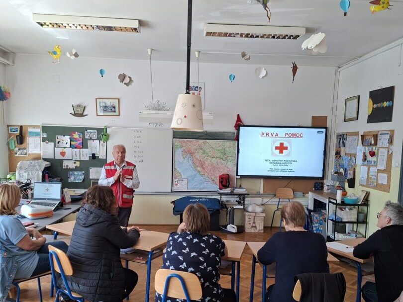 Obnovu znanja u pružanju prve pomoći te proceduru rukovanja AVD (automatskim vanjskim defibrilatorom) uređajem objasnio je primarijus dr. Slavko Lovasić. Pružanje prve pomoći je hvalevrijedno znanje koje može čovjeku spasiti život naglasio je primarijus Lovasić.